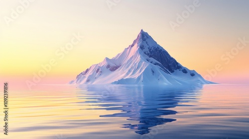 Snowy Mountain Peak Emerging from the Sea at Sunset
