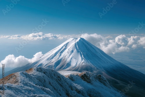 Snowy Mountain Peak with Blue Sky and Clouds Landscape