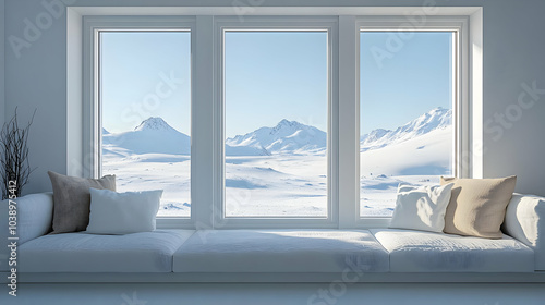 Snowy Mountain View from a White Window Seat