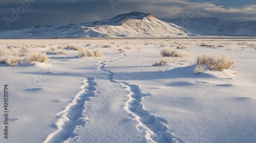 Snowy tracks winding through the High Desert of California.