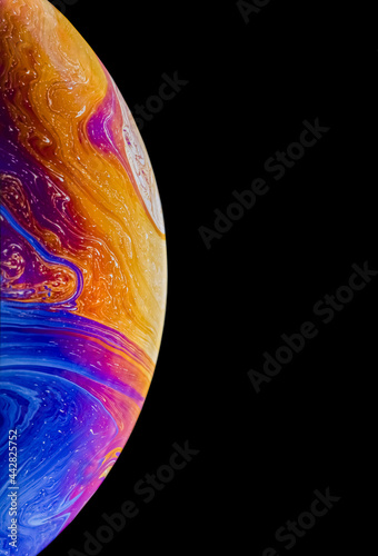 Soap bubble like a planet in space