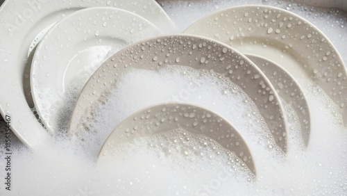 Soapy Plates Bubbles on Dishes in Kitchen Sink CleanUp.