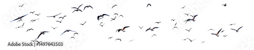 Soaring Silhouette: A mesmerizing murmuration of birds takes flight, their collective form a dancing, ethereal shape against the bright sky.