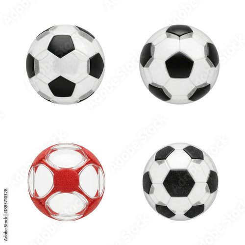 Soccer Ball Collection Four Black and White Red Balls.