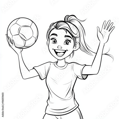 Soccer Cheer: A dynamic sketch captures a joyful young woman, her face alight with excitement, raising a soccer ball overhead with one hand and waving the other, embodying the spirit of the game