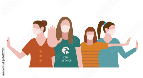 Social Distancing. People keeping distance for infection risk. People in medical mask for prevent virus.