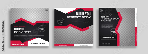 social media post gym fitness training template design, easy use, creative and simple banner.