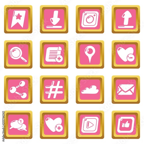 Social network icons set vector pink square isolated on white background