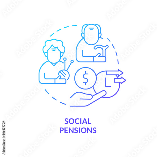 Social pensions blue gradient concept icon. Financial support. Work retirement. Social assistance abstract idea thin line illustration. Isolated outline drawing. Myriad Pro-Bold font used