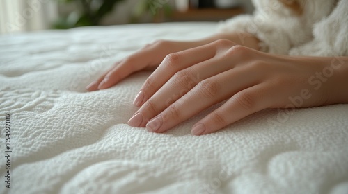 Soft and Luxurious: Hands Resting on a Plush White Mattress