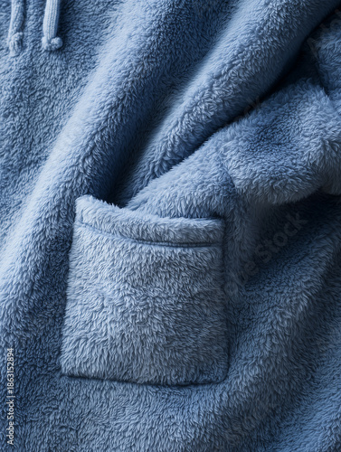 Soft blue wearable blanket hoodie flat lay, showcasing plush fleece texture, comfort, and cozy warmth