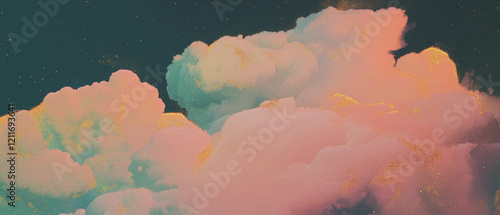 Soft clouds with golden glitters creating enchanting textures in the sky