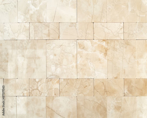 Soft Elegance: Crema Marfil Marble Tile Installation - Alternating Pattern, High Resolution - Perfect for Warm Designs