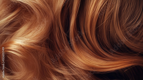 Soft, flowing strands of golden blonde hair show elegant waves and shine. The warm light enhances the texture and color, creating a captivating visual effect