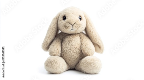 Soft fluffy rabbit toy with long ears isolated on a white background