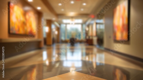Soft Focus of Hospital Foyer with Decorative Artwork and Lighting