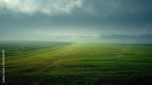 Soft Fog Over Green Field in Pale Tones at Dusk