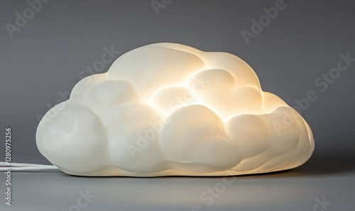 Soft, illuminated cloud-shaped lamp on a neutral background, creating a cozy ambiance