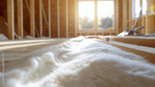 Soft insulation material close-up with sunlight