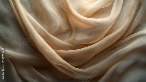Soft light illuminates flowing beige fabric dramatic folds. AI Generated