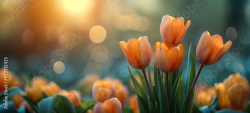 soft light sunlight shine on tulip flower field, close up white grass flower swing moving in gentle breeze