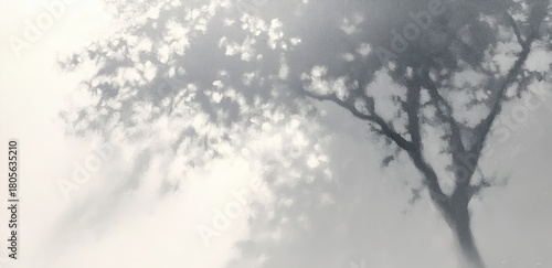 Soft monochrome silhouette of a tree with dappled light and dreamy shadows evoking calm and quiet
