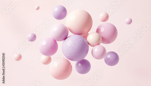Soft pastel spheres float gently against a pink background, creating a modern and playful aesthetic ideal for creative projects, branding, or product design.