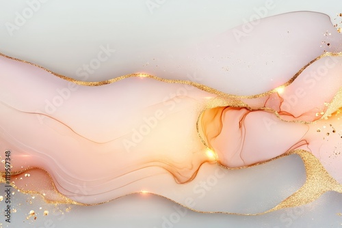 Soft pink and gold abstract design with flowing shapes and shimmering accents in gentle hues