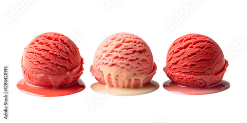 Soft Red Ice Cream Ball Melting in Three Unique Styles for Tasty Treats, PNG Transparent