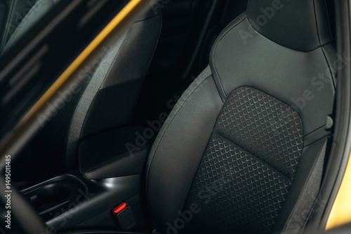 Soft seats. Detailed close up view of modern car interior