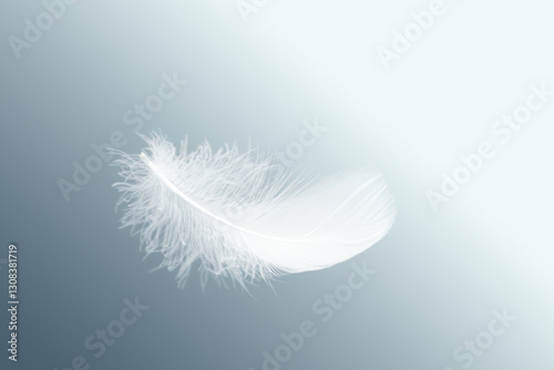 Soft Single Bird Feathers Floating in The Sky. Fluffy Downy. Freedom, Floating Freely, Peace. Softness of Feathers Falling in Heavenly.