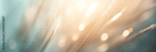 Soft sunlight filters through delicate grass blades, creating serene and dreamy atmosphere. gentle bokeh effect adds touch of magic to this tranquil scene