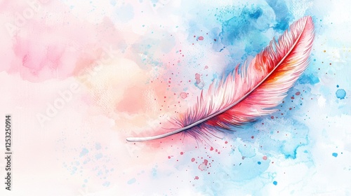 Soft Watercolor Illustration of a Single Feather on Pastel Background