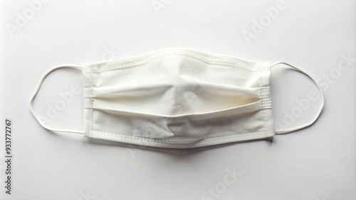 Soft, white, cotton cloth face mask with elastic ear loops and adjustable nose bridge, laid flat on a clean, white, minimalist background.