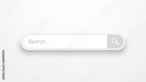 Soft white pill‑shaped search bar with subtle shadow, spacious input field and right aligned light grey button containing a magnifying glass icon, ideal for clean modern light themed websites and appl