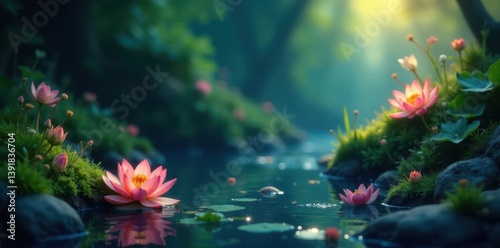 Softly glowing aquatic plants, aquatic, watercolor