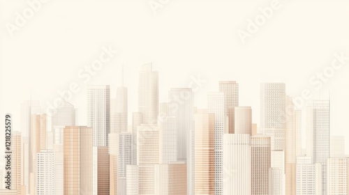 Soft-toned cityscape illustration, subtle pastel colors, modern architecture.