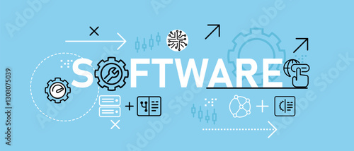 Software conceptual database management platform software development network connection programming technology maintenance data flow analysis engineering testing icon design concept illustration