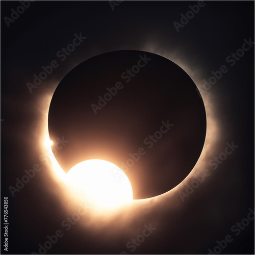 Solar eclipse illustration. Astronomy, space, galaxy. Sun, Moon. Astrology. Total solar eclipse.
