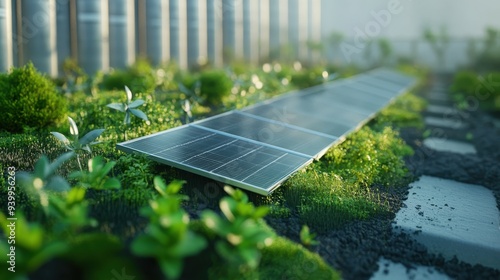 Solar Panel Path in Green Garden