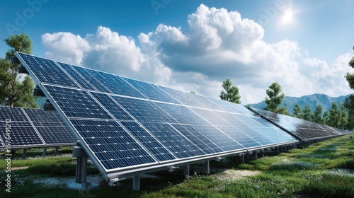 Solar panels in nature under bright sun