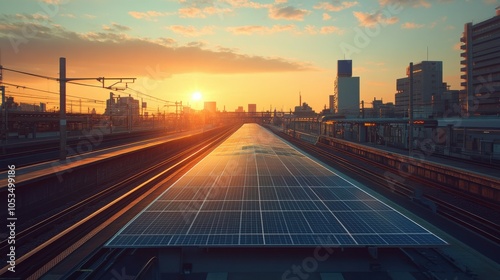 Solar panels on a train station roof.