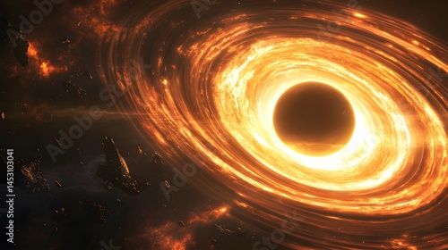 Solar System with Black Hole: The solar system with a distant black hole in the background, its gravitational pull subtly warping the scene.
