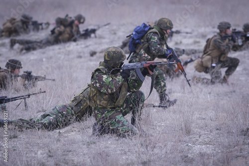 Soldiers from US Navy Amphibious Squadron 8 assault an enemy strong point during a NATO military exercise