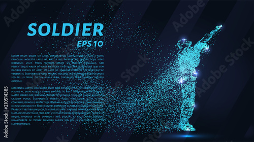 Soldiers of the particles. The warrior consists of circles and points. Vector illustration.