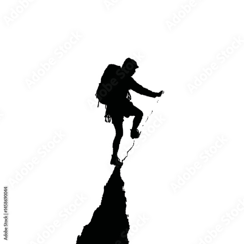 Solid black silhouette of a mountain climber ascending, Vector Graphic