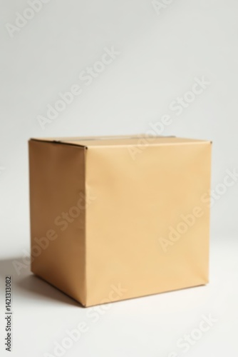 Solid brown box against pure white, clean background, carton, white, studio