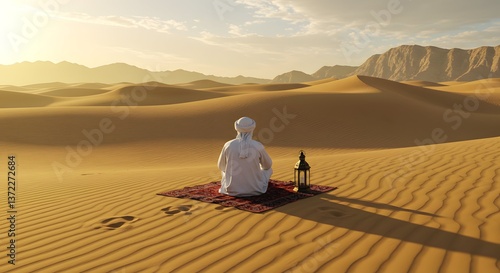 "Solitude and Reflection in the Desert at Sunset"