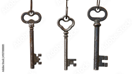 Some keys hanging isolated on transparent background