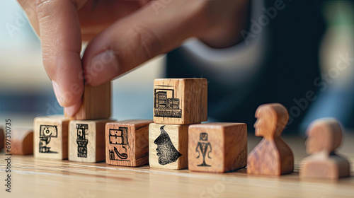 Someone is placing a finger on a block with a picture of a man. This asset is suitable for use in social media posts, advertisements, and blog illustrations related to identity, pointing, and decision